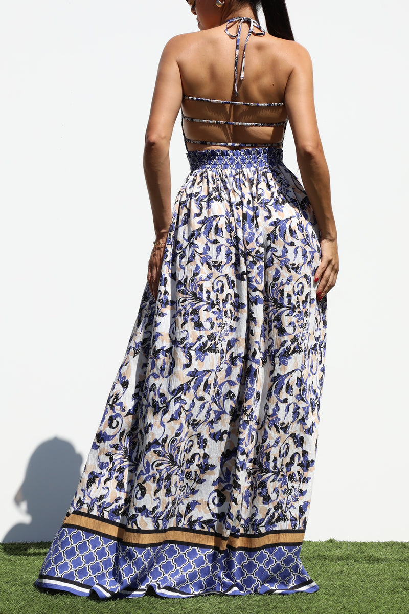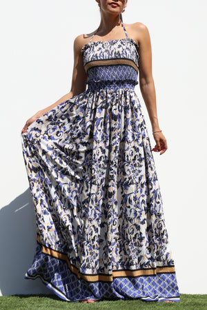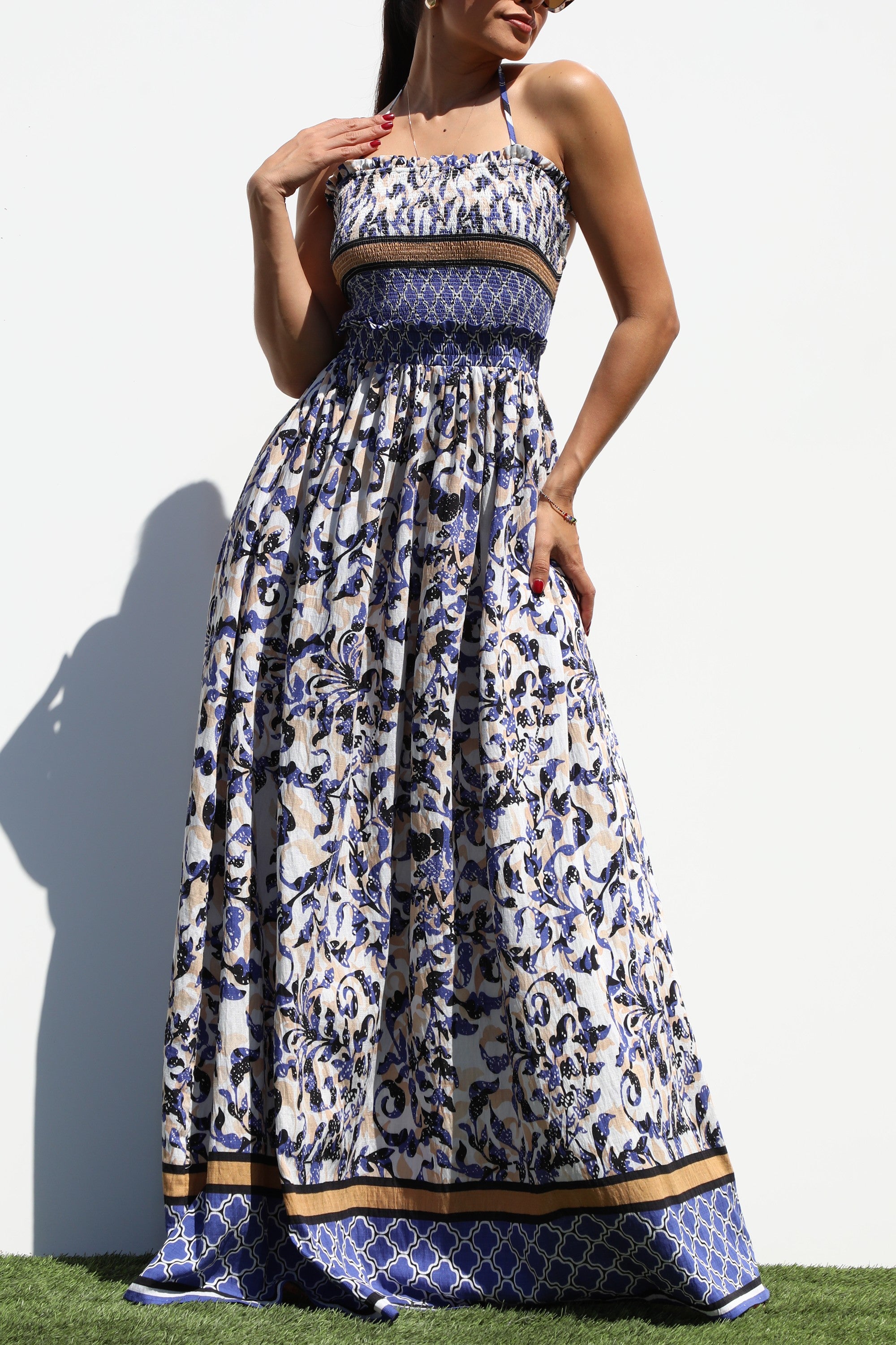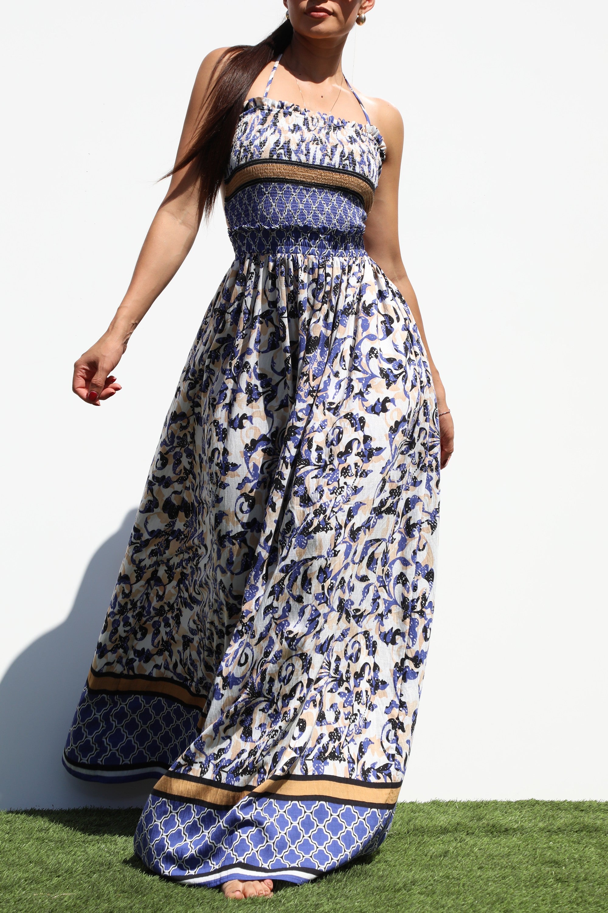DD7426, SMOCKED TOP WOVEN MAXI DRESS