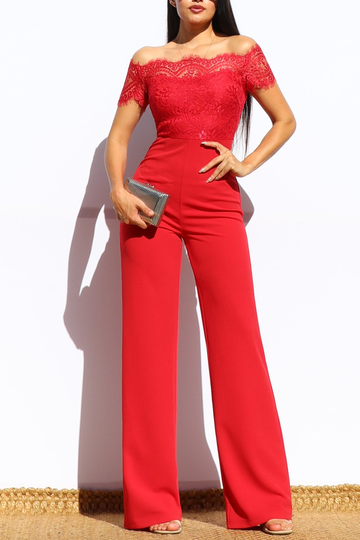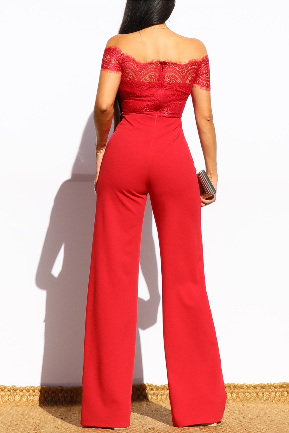 DD7979, LACE OFF SHOULDER KNIT JUMPSUIT