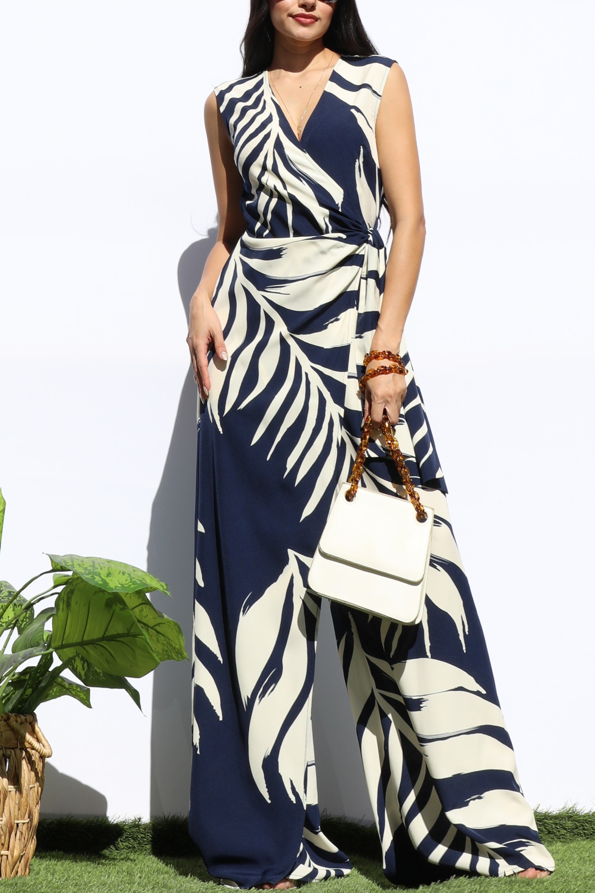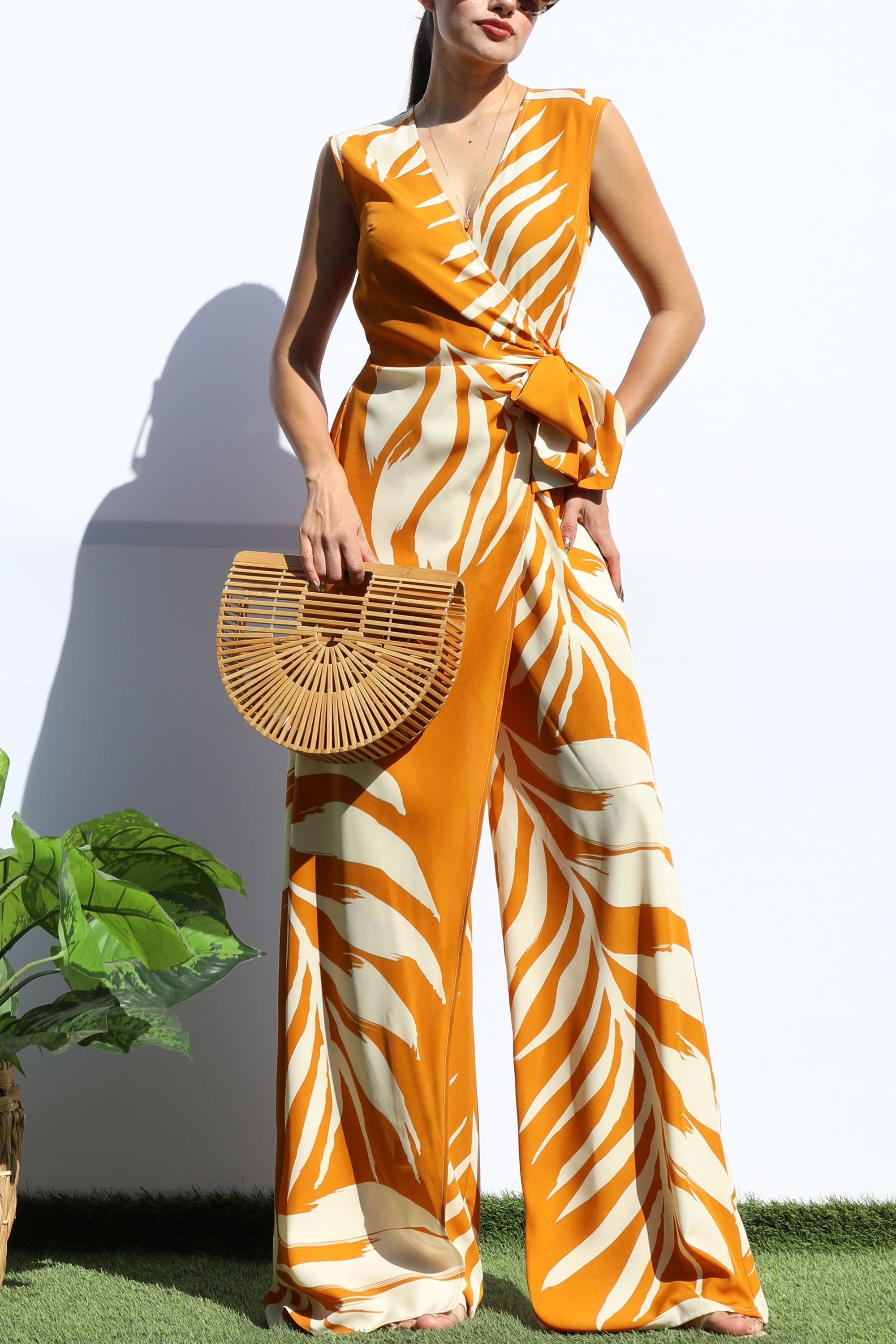 DD8183, LOOSE FIT WRAP FLARE-LEG JUMPSUIT