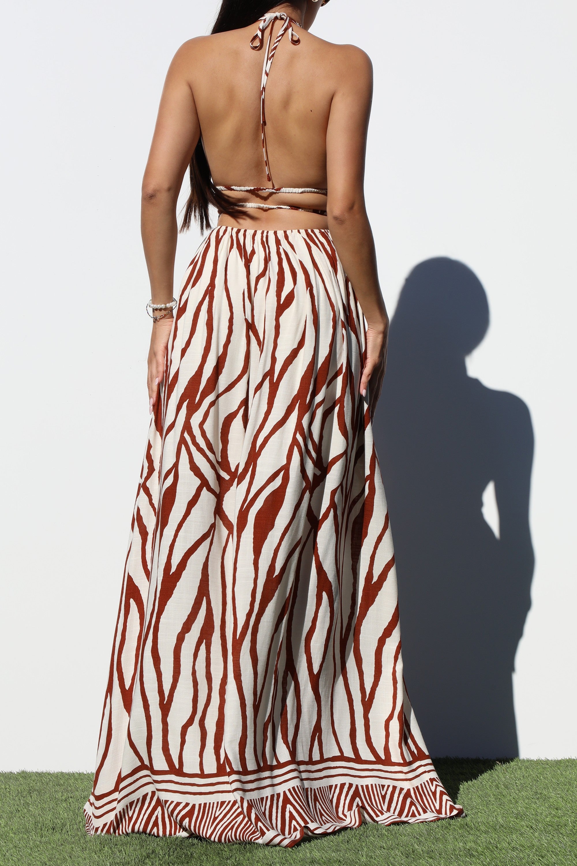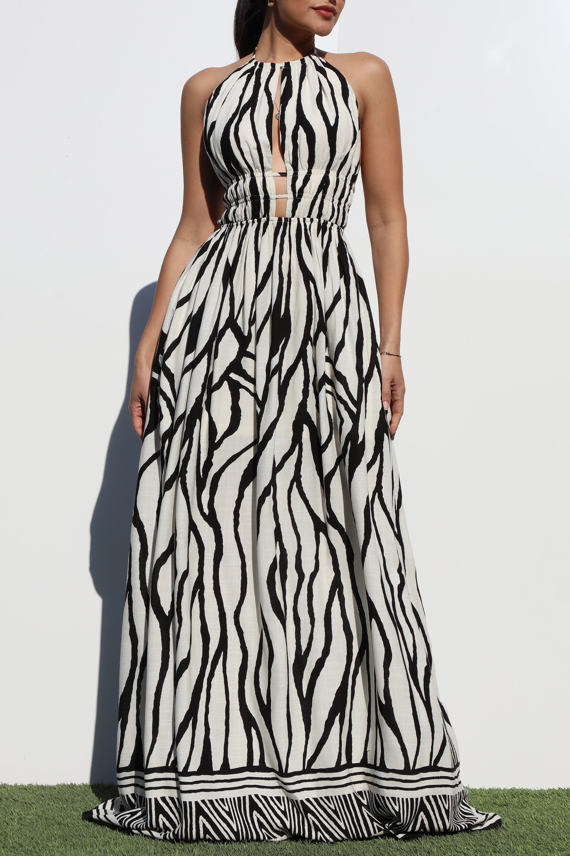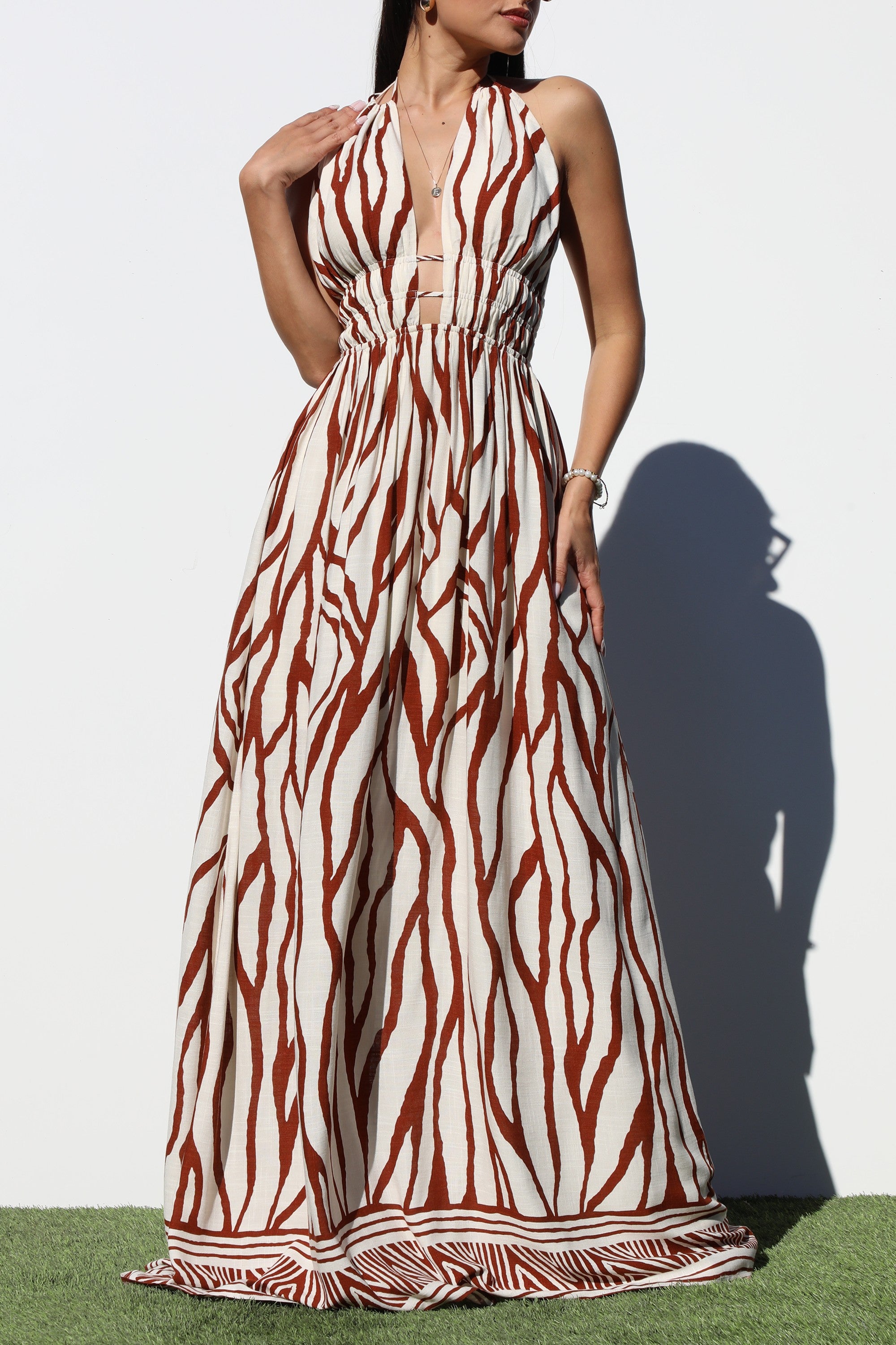 DD8241, BORDER PRINTED DEEP V MAXI DRESS