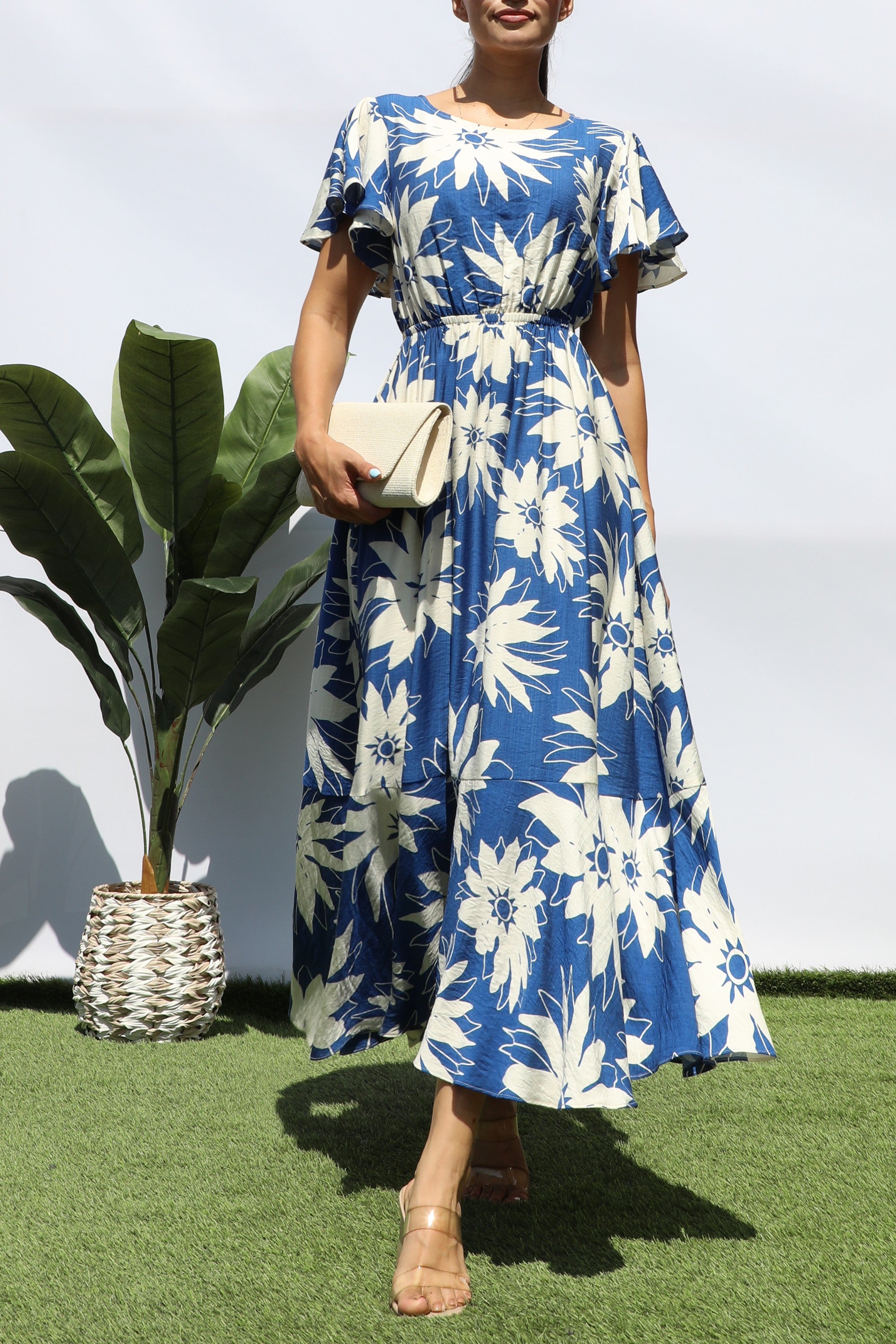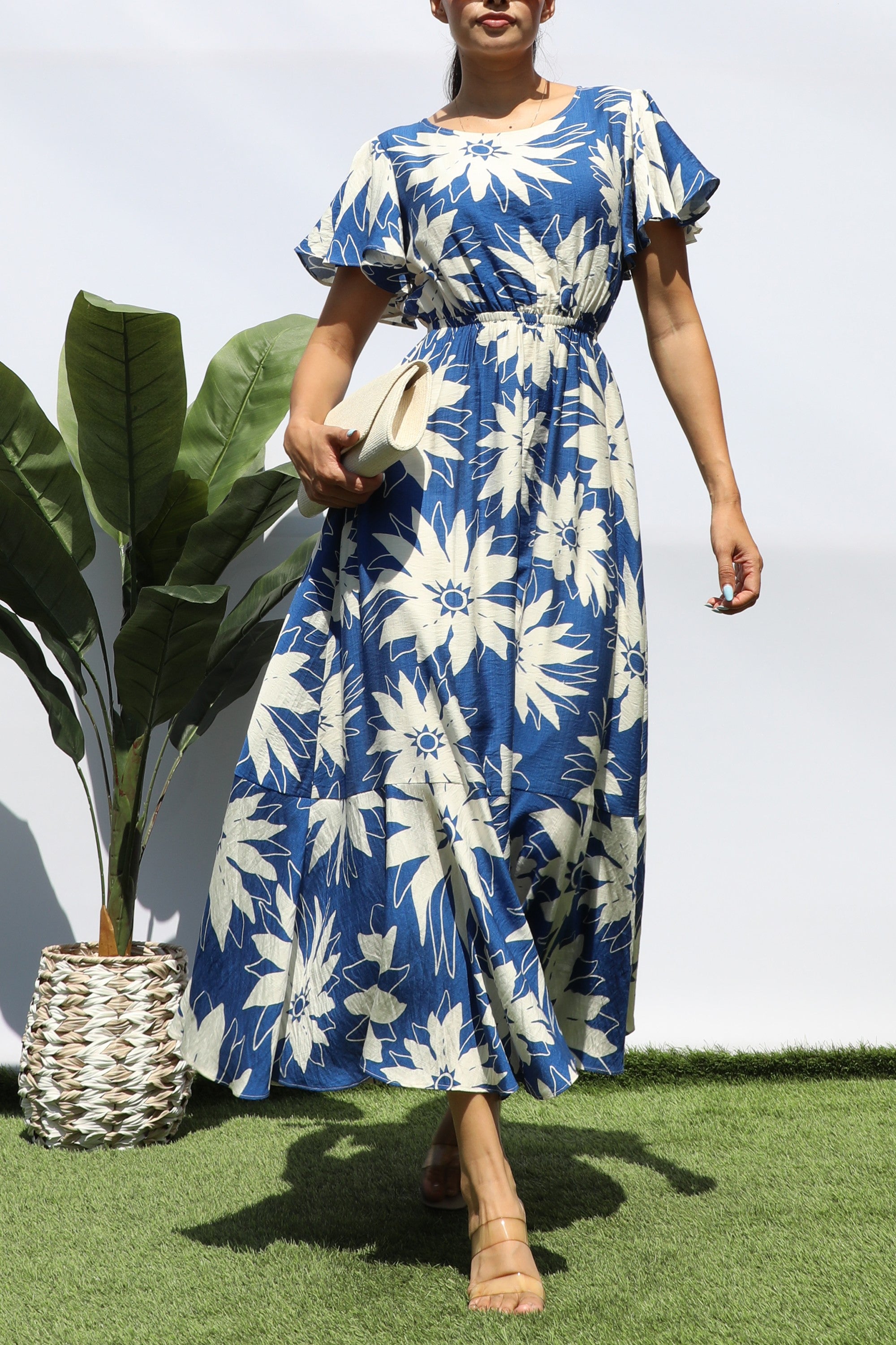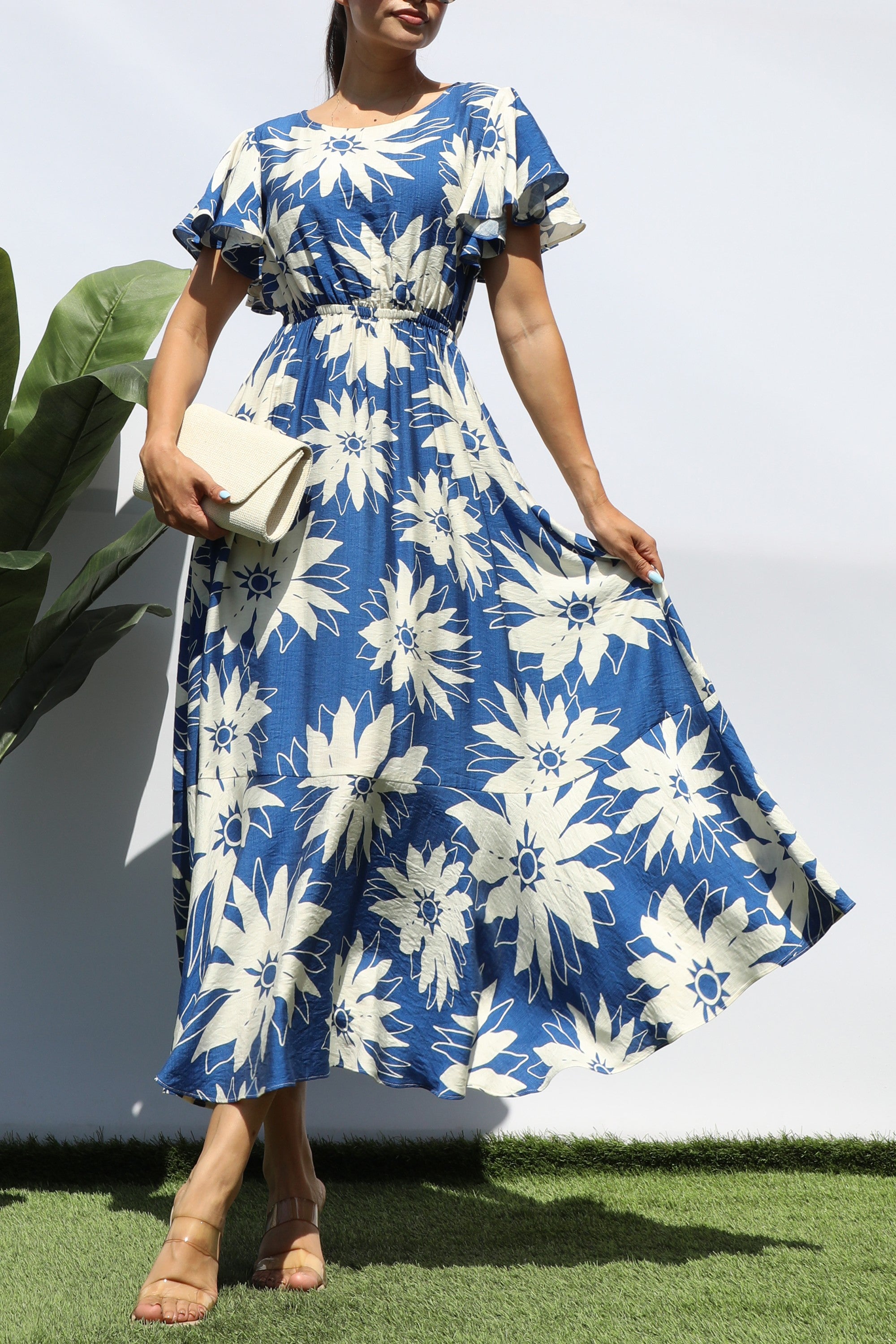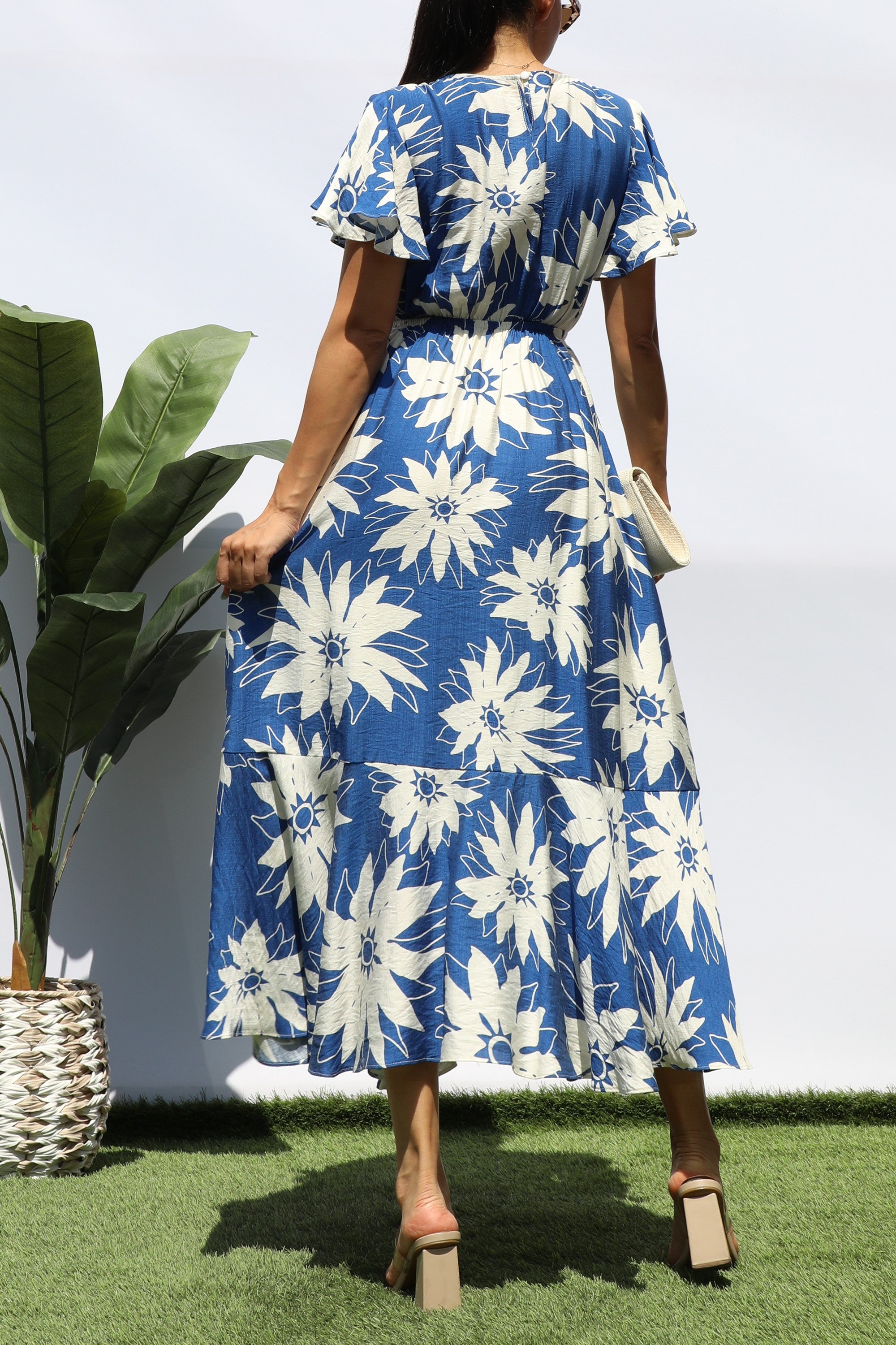 DD8280, PRINTED RUFFLE HEM MIDI DRESS